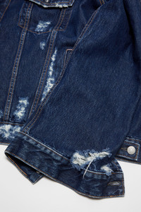 Distressed denim jacket - Relaxed fit - Mid blue
