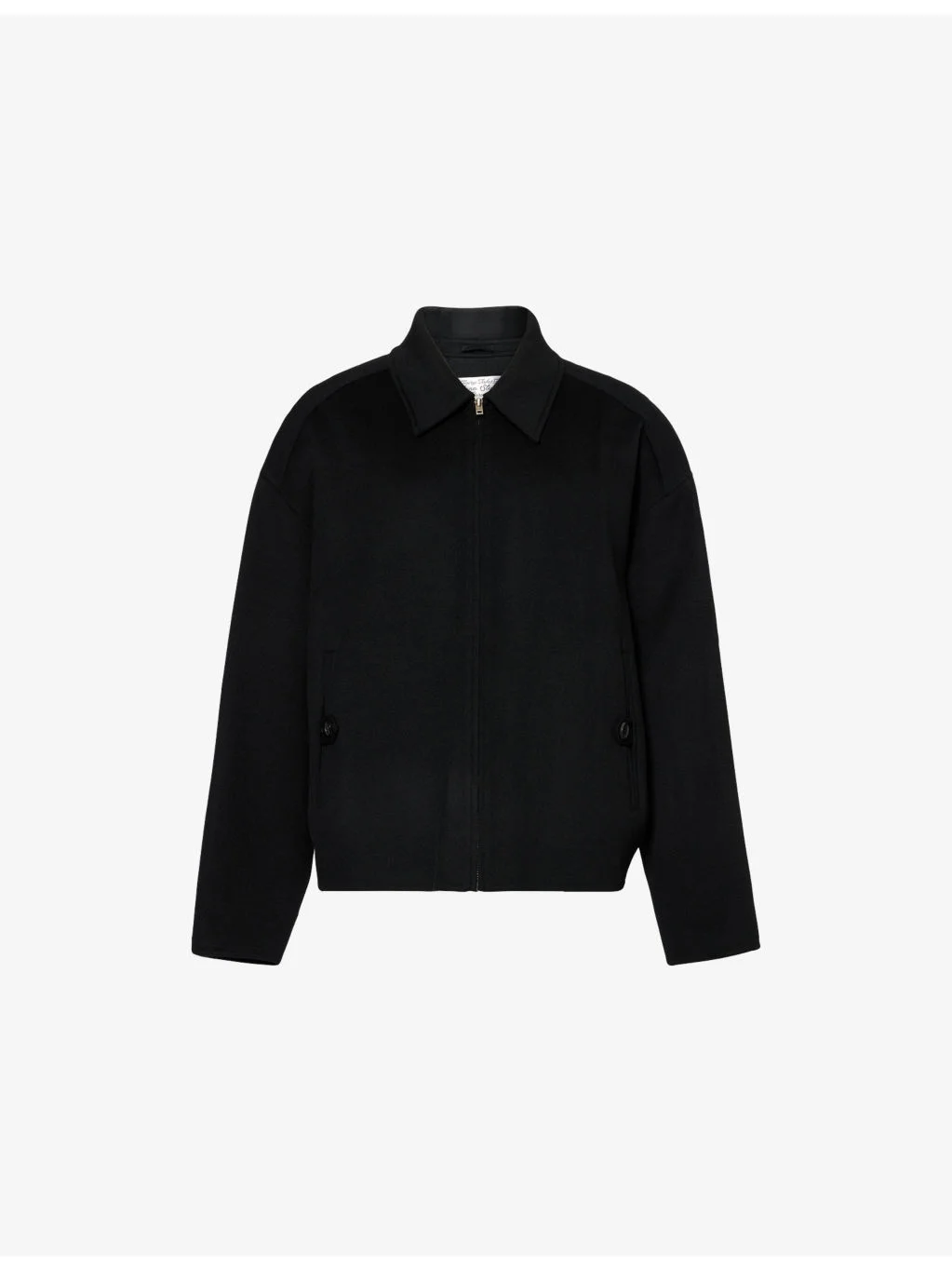 PRODUCT DETAILS - Acne Studios wool and cashmere-blend jacket - 90% wool, 10% cashmere; lining 100% viscose - Concealed zip fastening at front - Relaxed fit, pointed collar, dropped shoulders, long sleeves, adjustable waist tabs, two side slip buttoned pockets, branded silver-toned zip, exposed seams at back - Dry clean only - Size UK 40: length 27in / 68cm, chest 54in / 137cm - Model is 6ft 2in/1.88m and wears a size UK 40 - Midweight, non-stretch Ref: R04580876