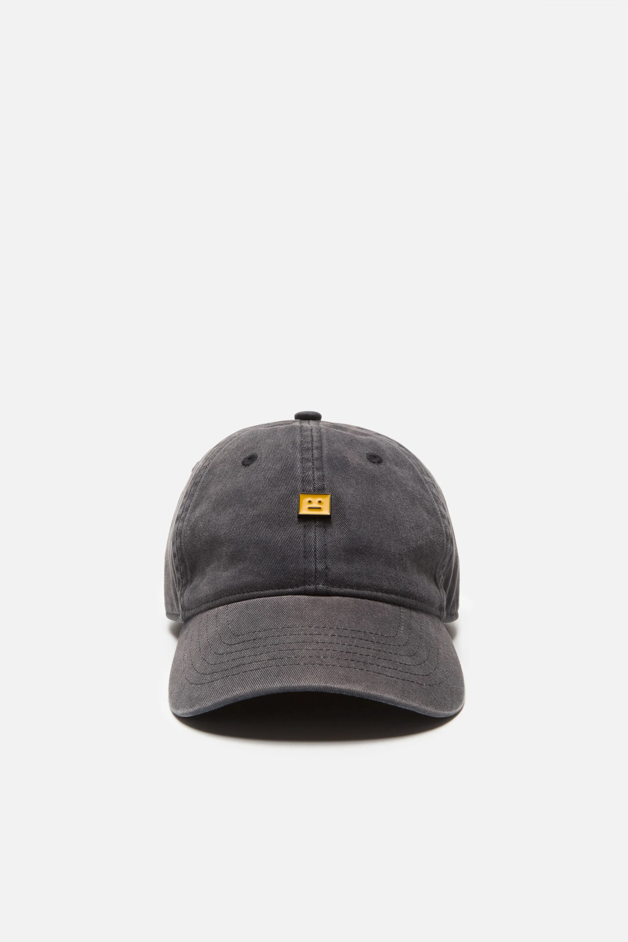 Six-panel baseball cap featuring a metal Face logo stud on the front, stitched eyelets for ventilation, and an adjustable double D-ring strap at the back. - Six panel design - Acne Studios Face metal stud - Adjustable d-ring closure - Measurement: 59 cm - Style ID: FA-UX-HATS000259 - Made with organically grown cotton - Shell: 100% Cotton, Lining: 100% Cotton