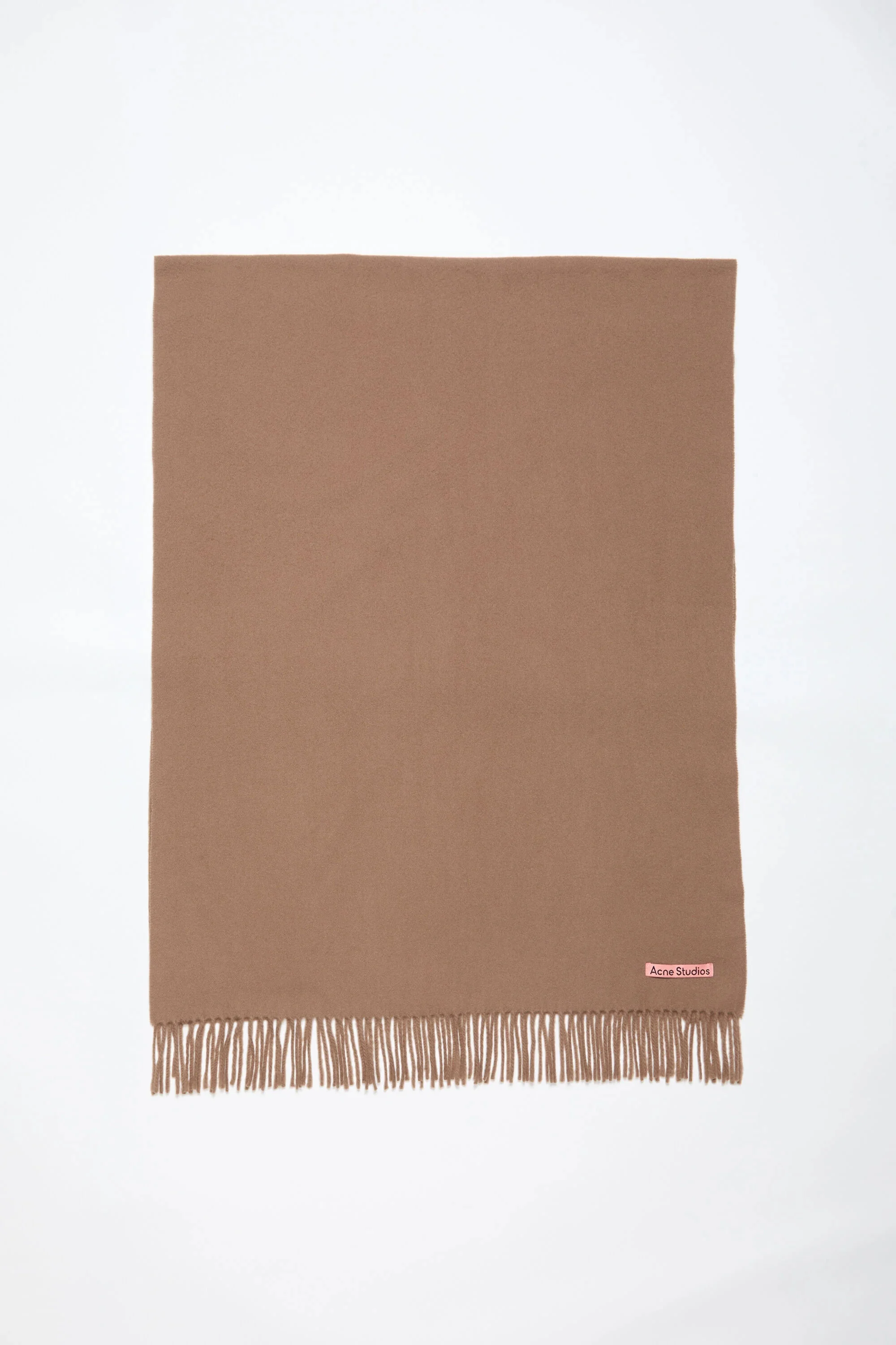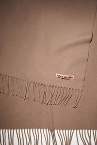 Acne Studios caramel brown fringed scarf is detailed with a pink Acne Studios label and crafted from midweight wool. - Fringed ends - Midweight wool - Pink Acne Studios label - Measurements including fringe: 200 cm x 70 cm - Fringe measurements: 10 cm approx. - Style ID: FN-UX-SCAR000217 - Made with certified wool according to the Responsible Wool Standard. Certified to the Responsible Wool Standard (RWS) by Control Union, license number CU-1024001 - Shell: 100% Wool