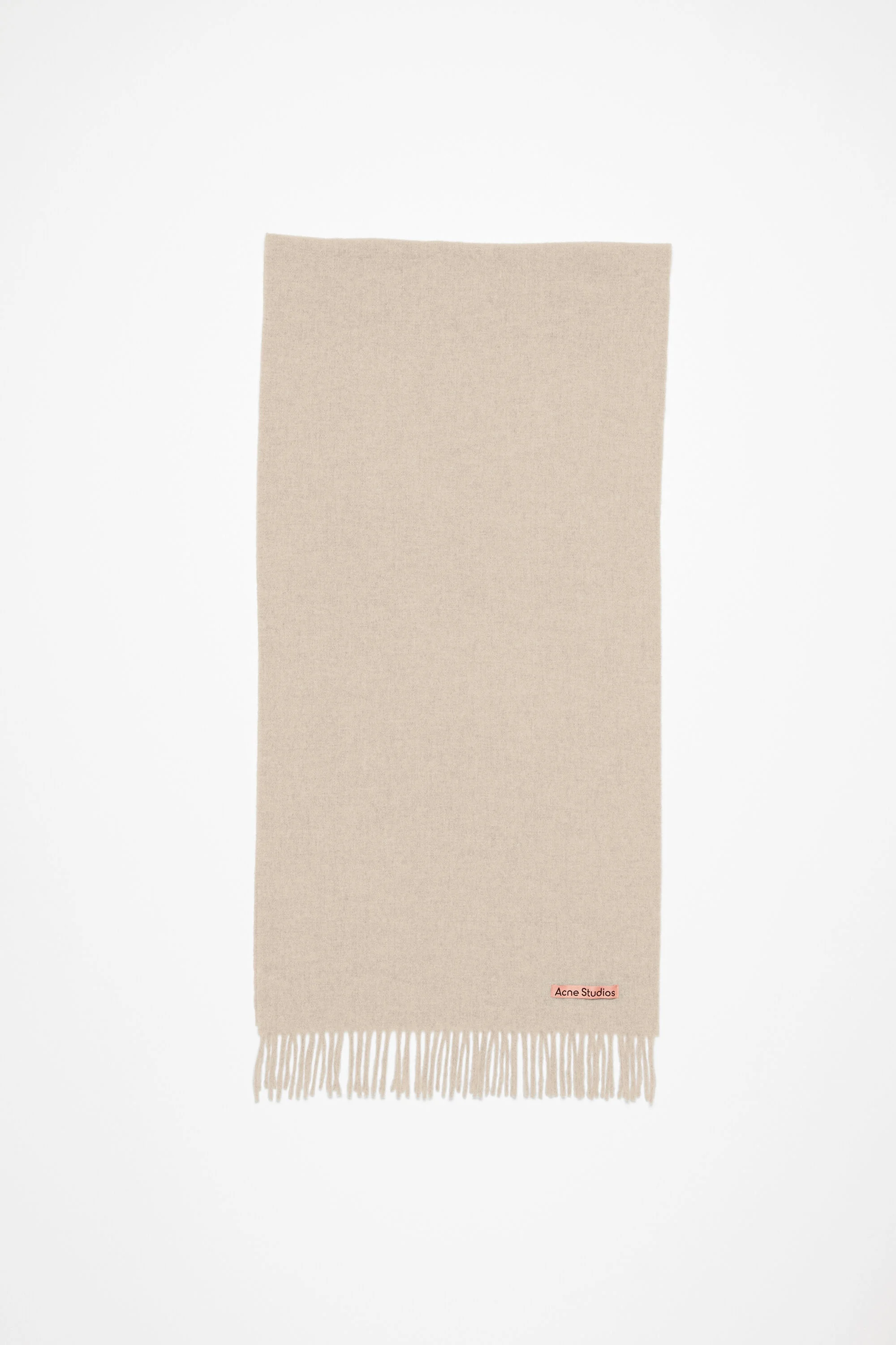 Acne Studios oatmeal melange fringed scarf is detailed with a pink Acne Studios label and crafted from midweight wool. - Fringed ends - Midweight wool - Pink Acne Studios label - Measurements including fringe: 200 cm x 45 cm - Fringe measurements: 10 cm approx. - Made in Italy - Style ID: FN-UX-SCAR000218 - Made with certified wool according to the Responsible Wool Standard. Certified to the Responsible Wool Standard (RWS) by Control Union, license number CU-1024001 - Shell: 100% Wool