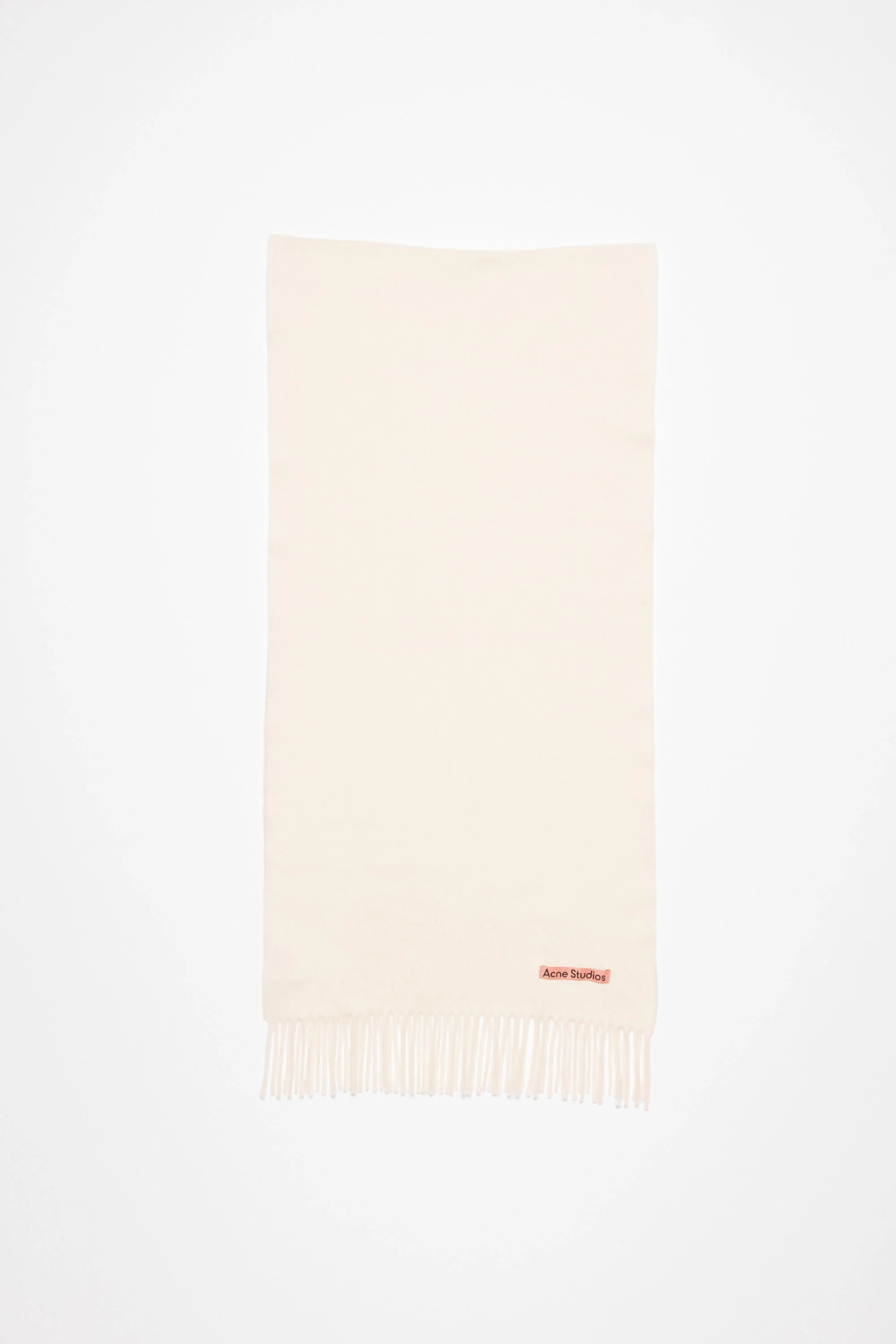 Fringed scarf is crafted from midweight wool with a soft hand-feel, detailed with a pink Acne Studios label. - Fringed ends - Midweight wool - Pink Acne Studios label - Measurements including fringe: 200 cm length; 45 cm width - Fringe measurements: 10 cm approx. - Made in Italy - Style ID: FN-UX-SCAR000218 - Made with certified wool according to the Responsible Wool Standard. Certified to the Responsible Wool Standard (RWS) by Control Union, license number CU-1024001 - Shell: 100% Wool