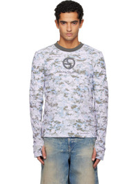 Stretch nylon jersey T-shirt. · Camouflage pattern printed throughout · Paneled construction · Rib-knit crewneck · Logos printed at chest and front hem · Thumbhole at cuffs Supplier color: Pastel khaki Body: 75% nylon, 25% elastane. Trim: 100% polyester. Made in Portugal 252129M213068