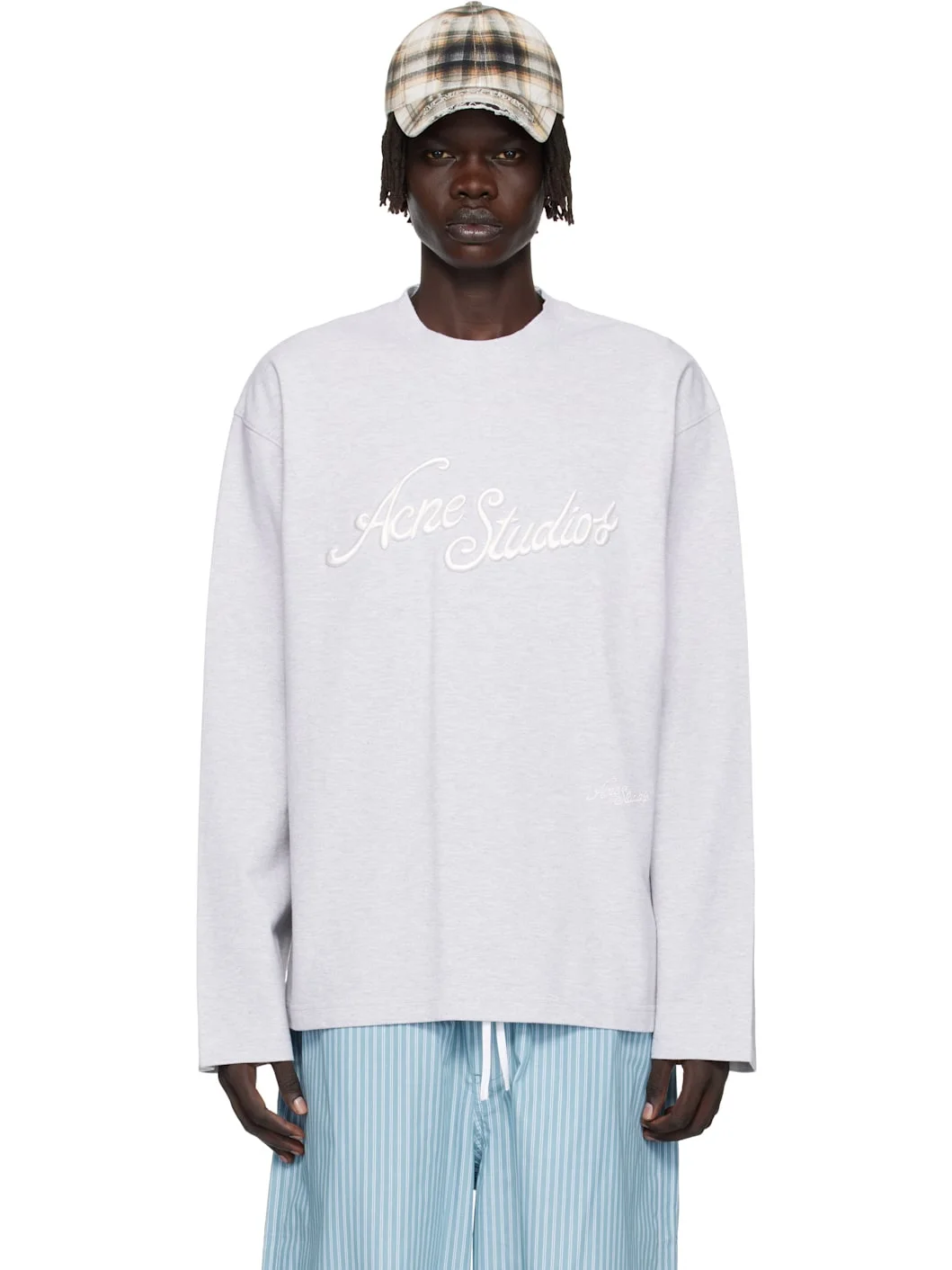 Cotton pique T-shirt. · Rib-knit crewneck · Logo embroidered at chest and front hem · Tennis-tail hem · Dropped shoulders Supplier color: Pale grey melange 100% cotton. Made in Portugal 252129M213050