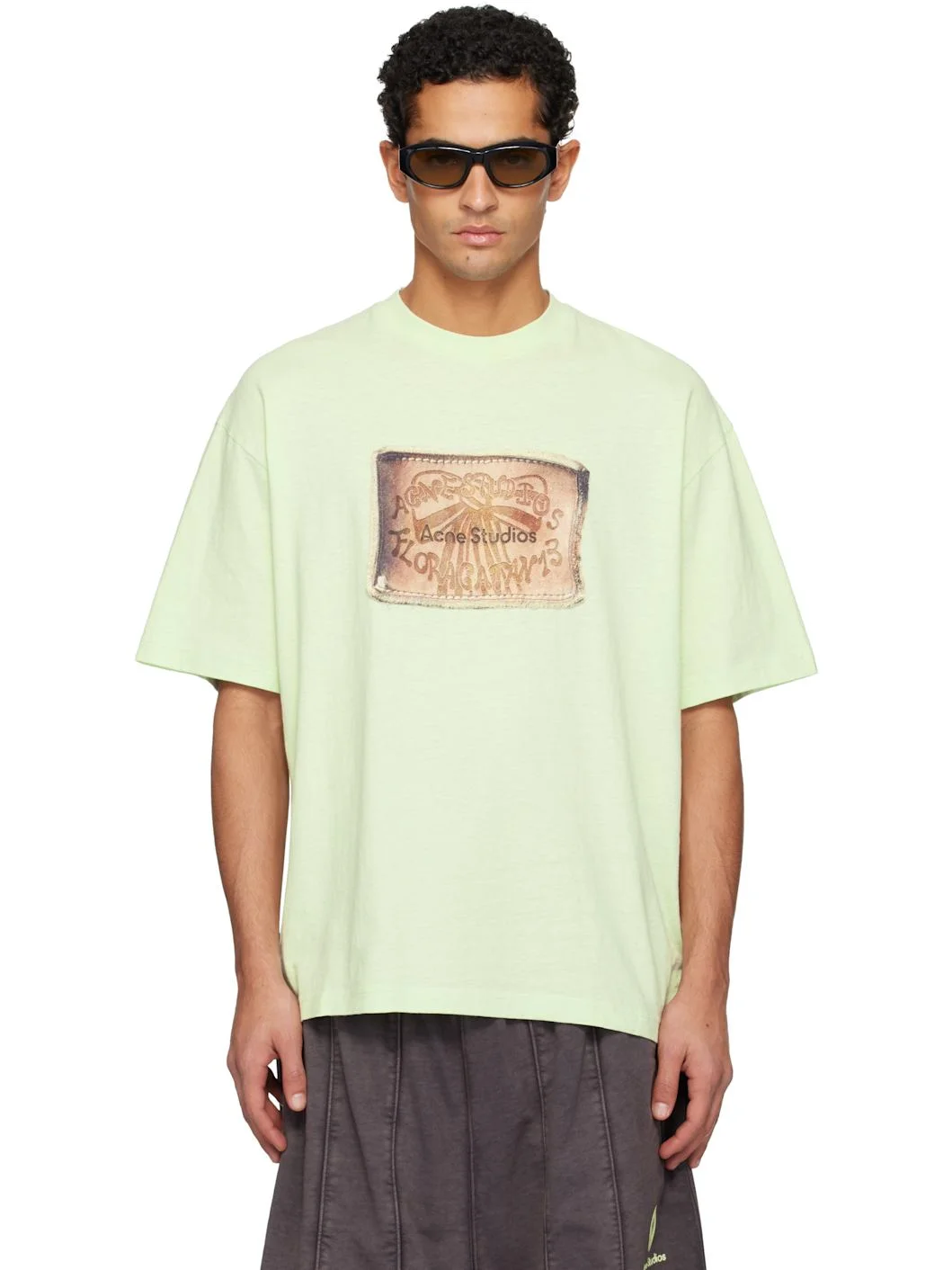 Slub organic cotton jersey T-shirt. · Rib-knit crewneck · Logo patch with loose threads at front · Dropped shoulders Supplier color: Pistachio green 100% cotton. Made in Portugal 252129M213062