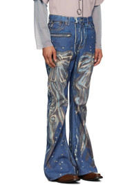 Bootcut cotton canvas jeans. Trompe l'œil graphic printed throughout. · High-rise · Belt loops · Five-pocket styling · Zip-fly · Logo printed at back Supplier color: Mid blue Body: 100% cotton. Lining: 65% polyester, 35% cotton. Made in Italy 242129M186034