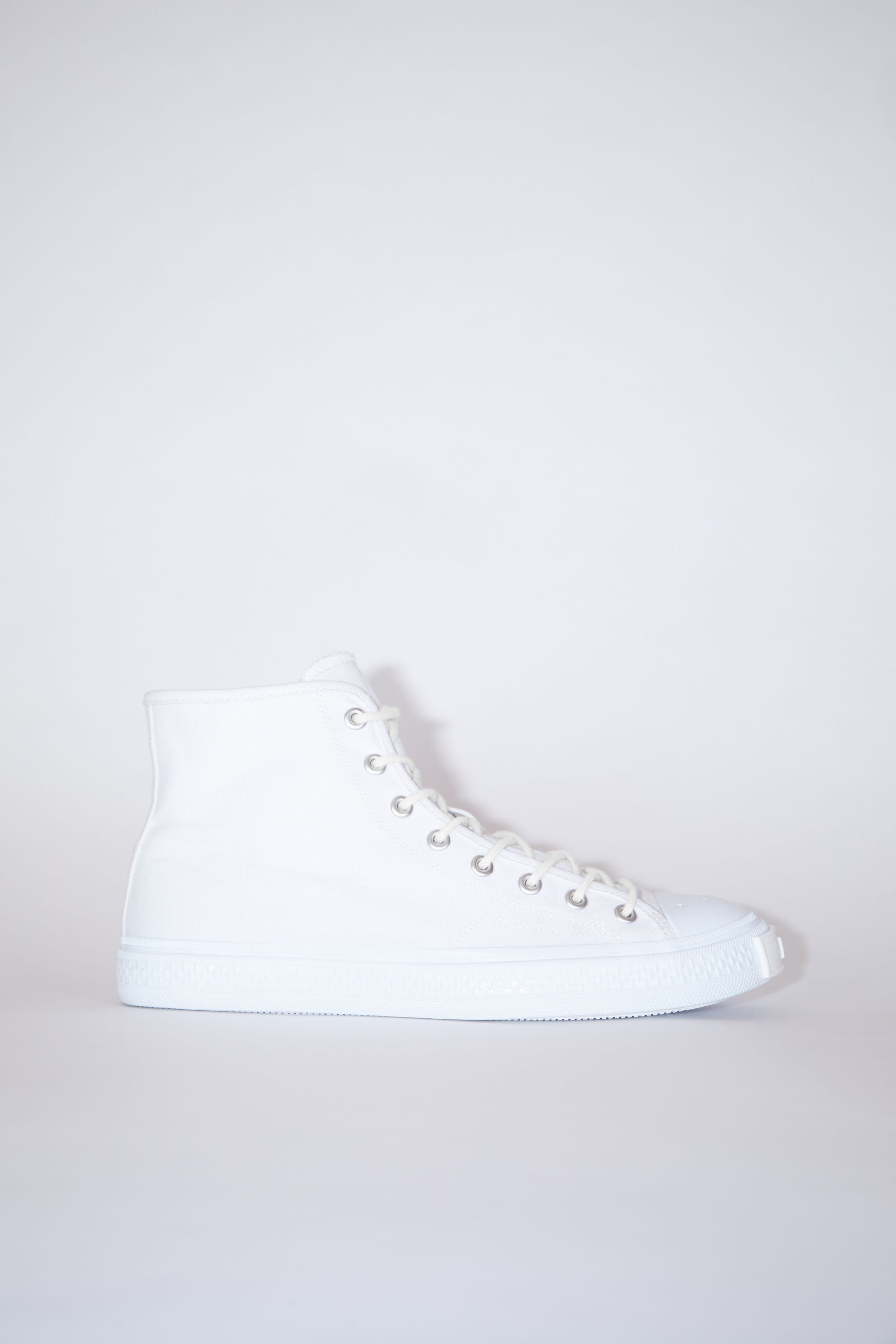 Acne Studios optic white high top sneakers are made from cotton with rubber soles. Completed with a branded logo tag on the front. - Cotton canvas - Lace-up - Rubber soles - Style ID: Ballow High Tag M - Uppers: 100% Cotton, Lining: 100% Cotton, Soles: 100% Rubber
