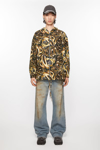 Hooded jacket features an all-over seasonal logo print and zipper closure with kangaroo pocket at the front. Cut to a relaxed fit and below hip length. - Relaxed fit - Below hip length - Hooded - Seasonal Acne Studios logo print - Zipper closure - Drawcord at hood and hem - Kangaroo pocket - Inner adjustable strap - Model is 188 cm/ 6'2 and wears a size 46 - Style ID: FN-MN-OUTW001133 - Shell: 100% Cotton