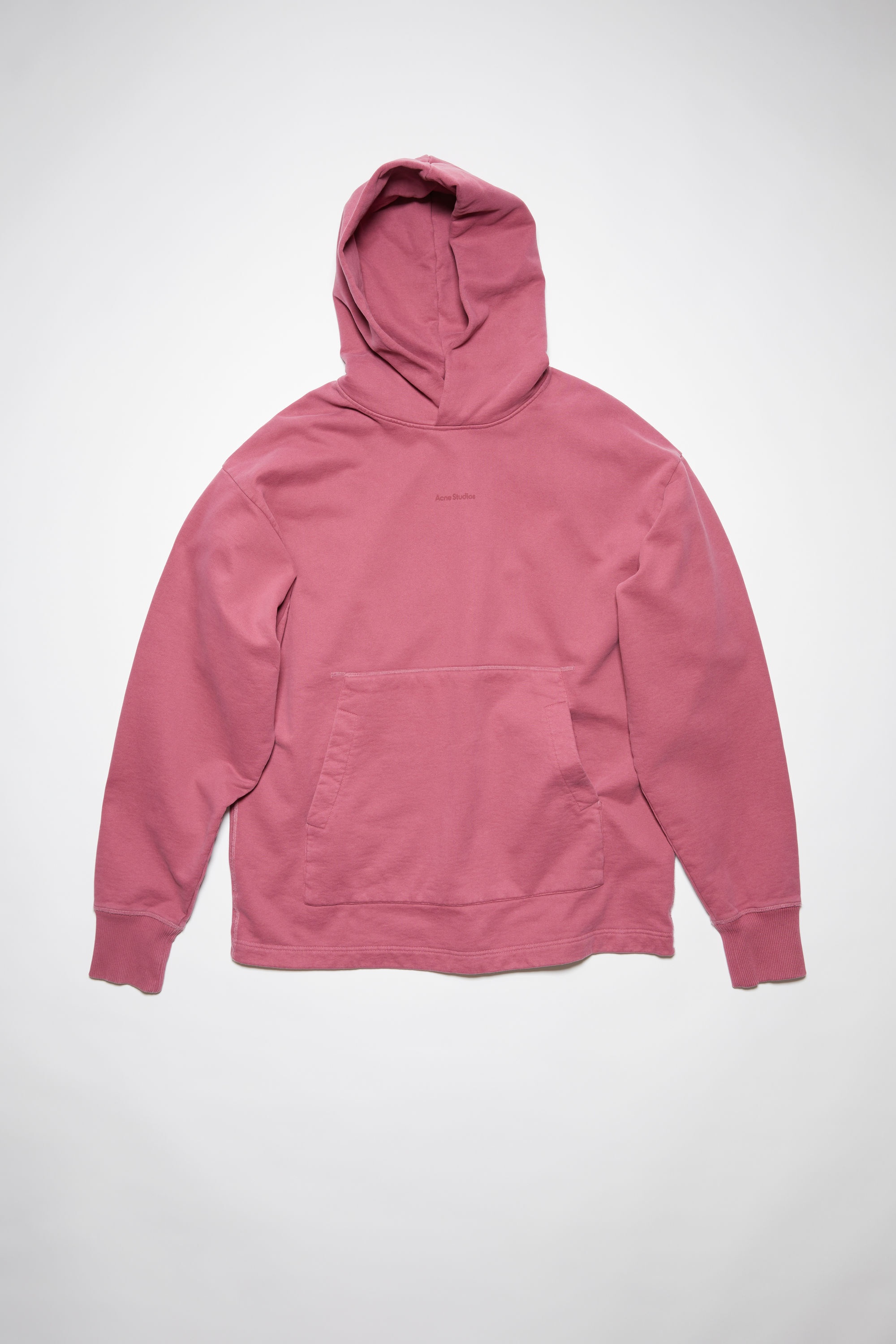 Acne Studios old pink hooded sweatshirt features a contrast branded logo stamp and a kangaroo pocket. Crafted from heavyweight fleece made of organic cotton. - Heavyweight fleece - Hooded - Acne Studios printed logo - Kangaroo pocket - Ribbed cuffs - Style ID: FN-MN-SWEA000261 - Oversized fit - European sizing - Model is 183cm/ 6'0"" and wears a size M - Shell: 100% Cotton