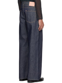 Loose-fit and wide-leg non-stretch denim jeans. · Low-rise · Belt loops · Five-pocket styling · Button fly · Leather logo patch at back waistband · Logo-engraved silver-tone hardware · Contrast stitching in tan Supplier color: Indigo Blue Body: 100% cotton. Trim: 100% leather. Made in Italy 261129M186025