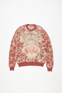 Crew neck sweater is cut to a relaxed fit and below hip length. Detailed with an all-over jacquard 'love letter' animation. Crafted from a wool blend. - Relaxed fit - Hip length - Crew neck - Jacquard animation - Ribbed neckline, cuffs and hem - Model is 187 cm / 6′2 and wears a size M - Style ID: FN-MN-KNIT000469 - Made with responsible wool and recycled nylon. - Shell: 37% Cotton, 24% Polyester, 14% Viscose, 13% Wool, 6% Metallized fibre, 5% Nylon, 1% Elastane