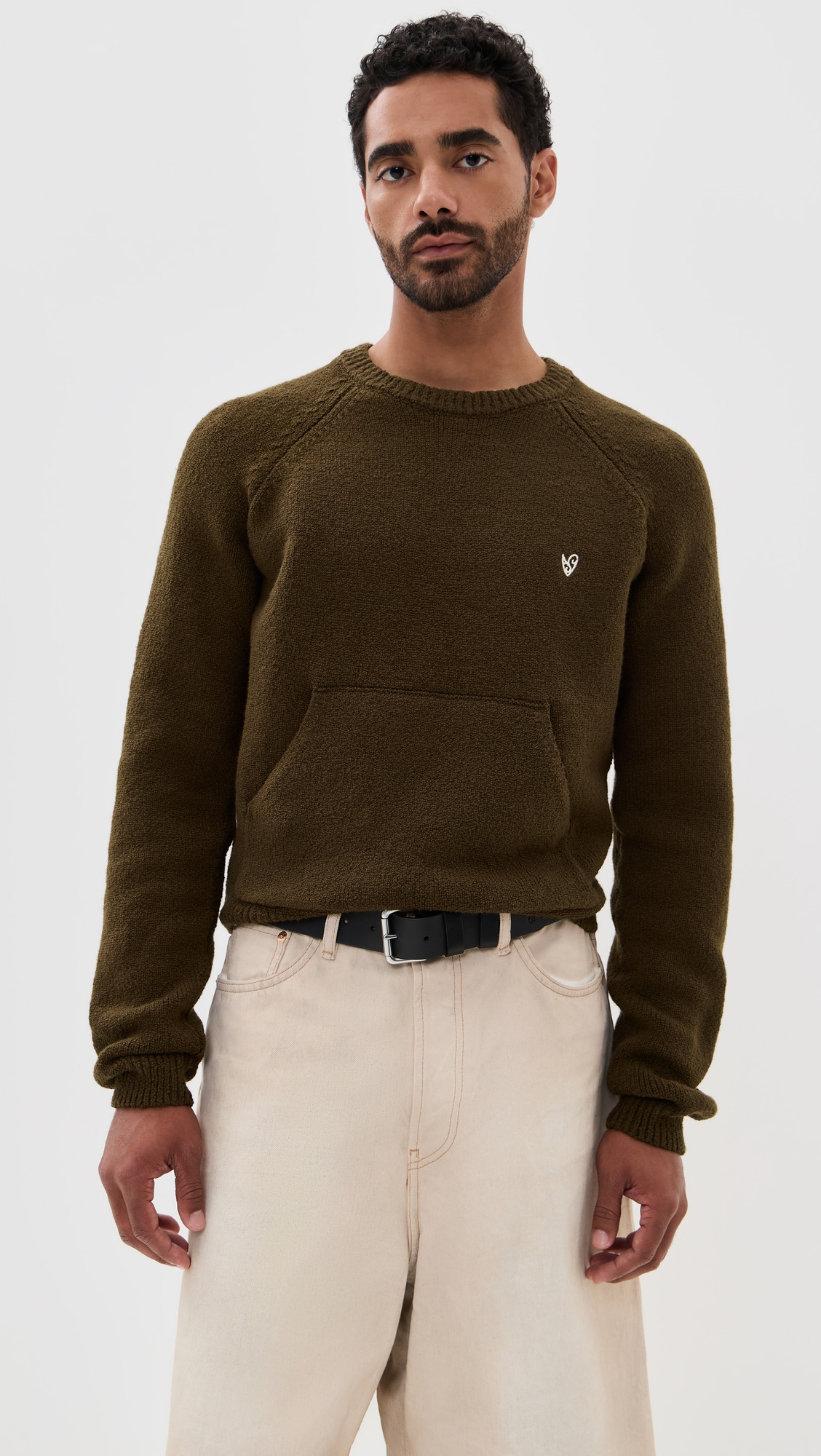 - Fabric: Heavyweight textured knit - Ribbed edges - Embroidered logo - Crew neck - Long sleeves - Kangaroo pocket - Shell: 72% cotton/27% nylon/1% elastane - Hand wash - Imported, China Style #ACNEE40145 Size & Fit Model measurements: Size M: Zach (6'0") usually wears size M Measurements from size M Length: 21.75in / 55cm Sleeve: 33.75in / 86cm Chest: 43.25in / 110cm