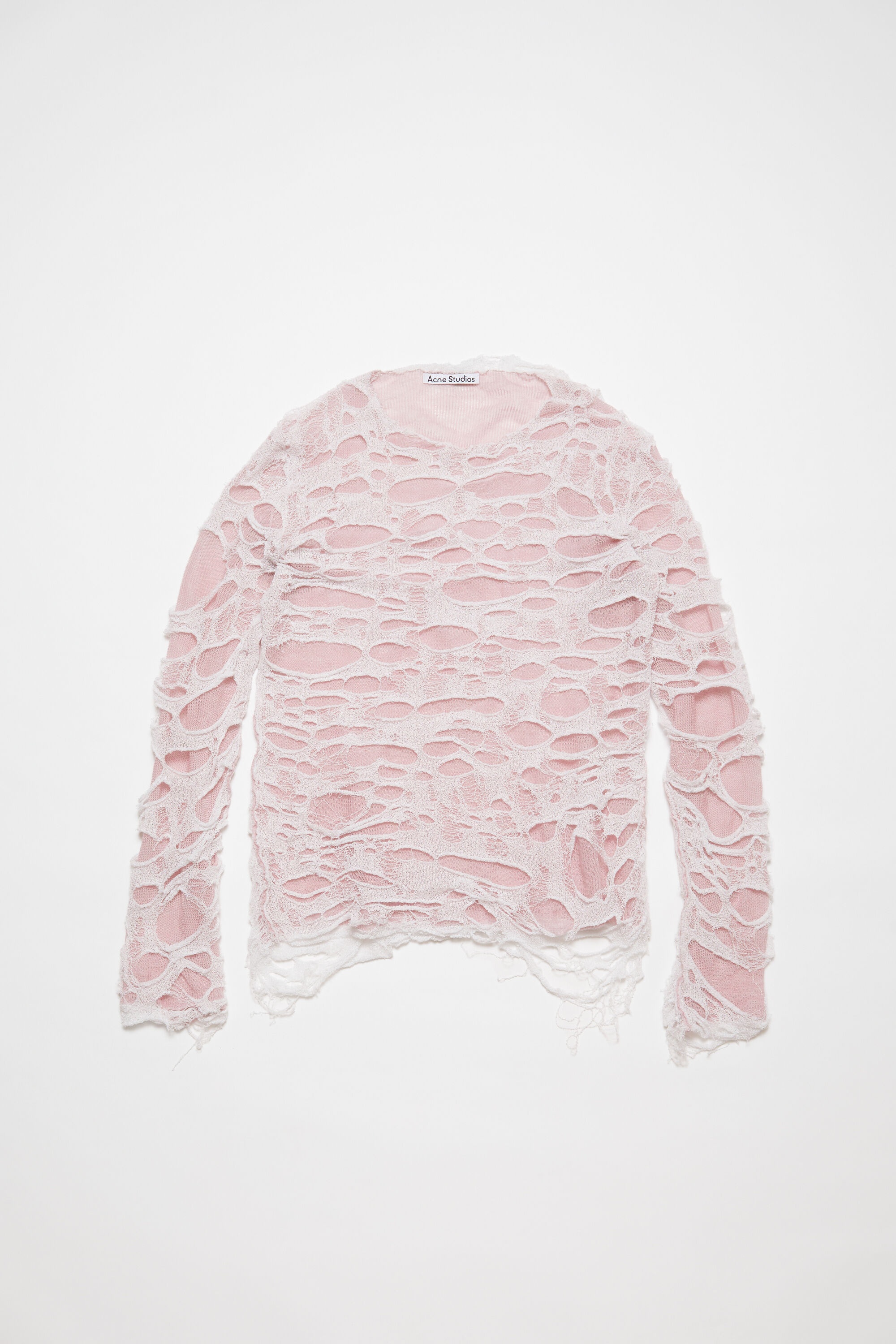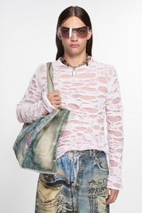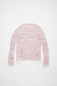 Long sleeve top crafted in a lightweight cotton and metallic fiber blend, characterised by distressed laser cut detalings and layered design. Cut to a regular fit and hip length. - Regular fit - Hip length - Round neckline - Double layer knit - Laser cut distressed design - Model is 188 cm / 6'2 and wears a size M - Style ID: FN-MN-KNIT000536 - Shell: 78% Cotton, 15% Metallic fiber, 7% Nylon