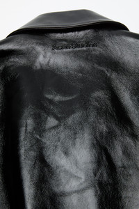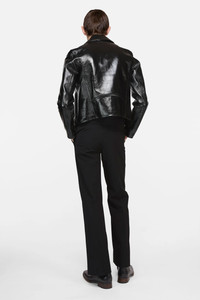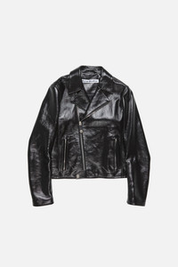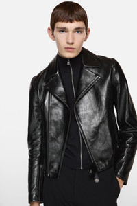 Biker jacket crafted from soft lamb leather with a shiny finish. Features branded metal zip closure, side pockets with hidden zippers, a tab with visible snap button, and zipped sleeves. Finished with an embossed logo on the back neckline. Cut to a regular fit and below-waist length. - Biker jacket - Regular fit - Below-waist length - Branded metal zip closure - Side pockets with hidden zippers - Tab with visible snap button - Zipped sleeves - Embossed logo - Model is 188 cm / 6'1 and wears a size 46 - Style ID: FN-MN-LEAT000320 - Shell made from leather from a Leather Working Group (LWG) certified tannery with Silver rating - Shell: 100% Lamb leather, Lining: 50% Viscose, 50% Acetate