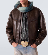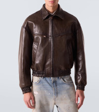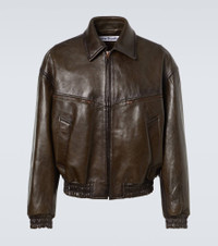 Stockholm-based Acne Studios has a firmly established cult following thanks to its Scandinavian-cool aesthetic. Crafted from supple leather, this blouson jacket showcases a zipped front and an elasticated hemline and cuffs. Product Details - Material: 100% lamb leather - Care instructions: specialist clean - Made in Turkey - Designer color name: Vintage Green - Item color: green - Lining: 50% acetate, 50% viscose - Filling: 100% polyester - Contains non-textile parts of animal origin - Closure: zipped front - Pockets: snap-buttoned pockets, zipped pockets, internal pocket - Cuff: elasticated - Hem: elasticated - Item number: P01066496 Size & Fit - True to size - Dropped shoulders - Designed for a loose fit - Elasticated hem - Non-stretchy fabric - Cropped - The model in the picture is 185cm-6'1" and wearing a size IT 50