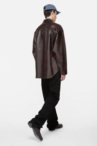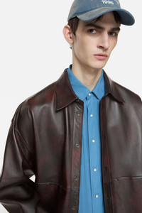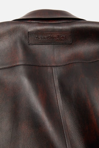 Shirt jacket crafted from soft leather with an Acne Studios embossed logo patch at the back. Finished with a center-front snap button closure. Cut for a relaxed fit and mid-thigh length. - Relaxed fit - Mid thigh length - Snap button closure - Side pockets - Acne Studios embossed logo patch - Model is 187 cm / 6'1" and wears a size 46 - Style ID: FN-MN-LEAT000295 - Shell made from leather from a Leather Working Group (LWG) certified tannery with Gold rating - Shell: 100% Preferred lamb leather