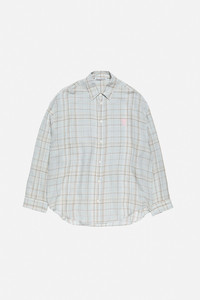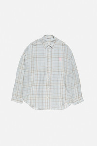 Long-sleeve button-up shirt crafted from a soft, airy linen-blend with a seasonal check and subtle shine. Features a classic collar, seasonal bow-logo embroidery on the chest, and a relaxed fit at hip length. - Relaxed fit - Hip-length - Seasonal check - Subtle shine - Seasonal bow-logo embroidery - Model is 188 cm / 6'2 and wears a 46 - Style ID: FN-MN-SHIR000972 - Shell made with 49% LENZING™ ECOVERO™ - Shell: 1% Polyester, 69% Viscose, 29% Linen, 1% Nylon