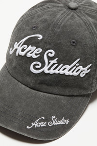 Baseball cap features a seasonal Acne Studios 3-D embroidered logo, crafted from washed twill cotton and detailed with an adjustable D-ring. - Six-panelled - Curved brim - Embroidered logo - Adjustable D-ring closure - Style ID: FN-UX-HATS000240 - Made from organically grown cotton. - Shell: 100% Cotton, Lining: 100% Cotton