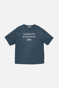 Short-sleeve crewneck T-shirt is crafted from organic cotton jersey with an irregular surface and sprayed for a vintage-inspired look. Detailed with an Acne Studios 1996 stamp logo and finished with distressed neckline, cuffs, and hem. Cut to a relaxed unisex fit and hip length. - Short-sleeve crewneck T-shirt - Relaxed unisex fit - Hip length - Sprayed for a vintage-inspired look - Stamp logo - Distressed trim - Style ID: FN-UX-TSHI000013 - Made with organically grown cotton - Shell: 85% Cotton, 15% True hemp