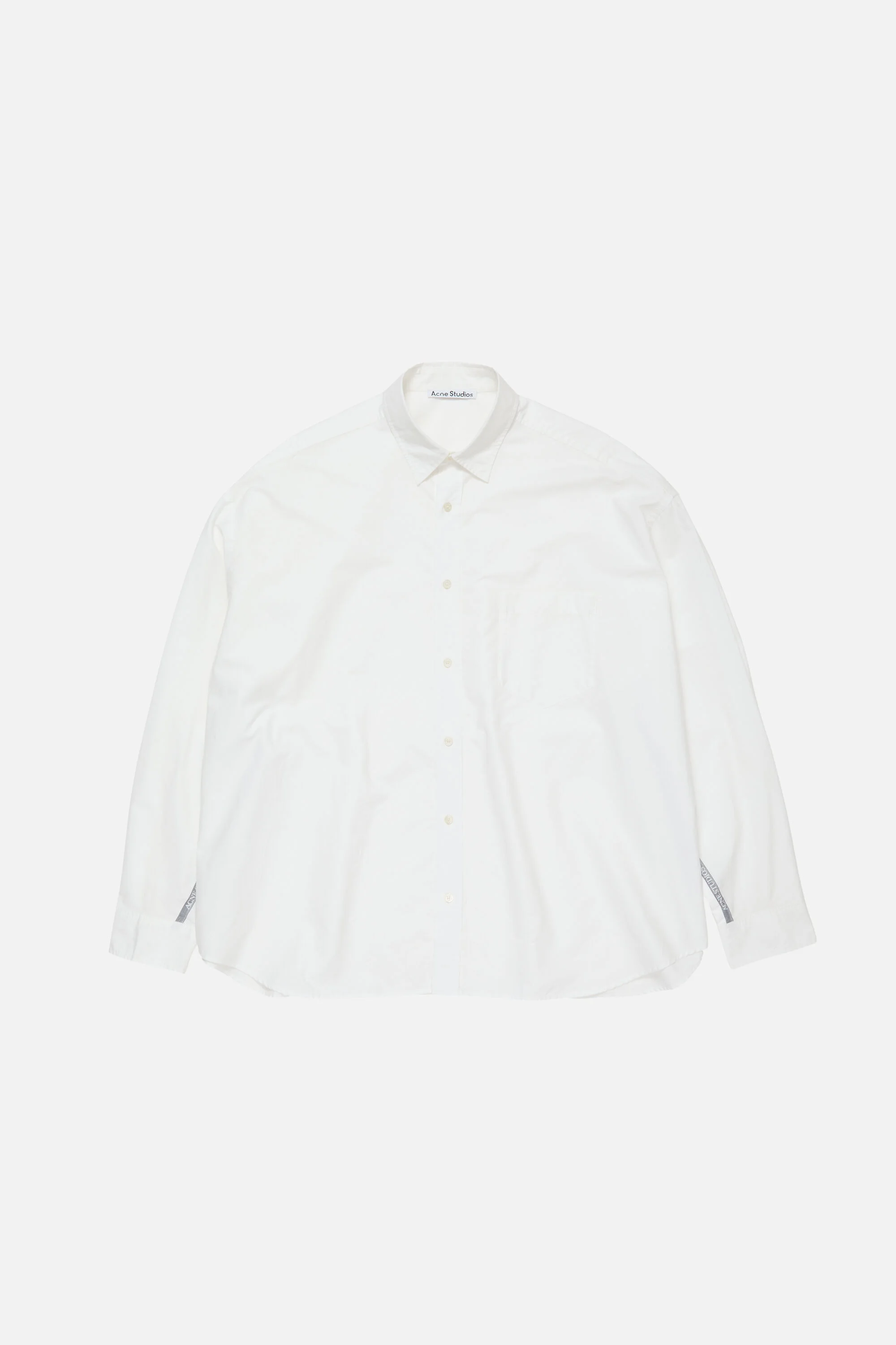 Button-up shirt crafted from light, airy cotton poplin, featuring a jacquard logo stripe detail along the inner arms. Finished with a front pocket and cut to a relaxed fit and below-hip length. - Relaxed fit - Below-hip length - Logo stripe design - Button-up closure - Front pocket - Model is 189 cm / 6'2 and wears size 46 - Style ID: FN-MN-SHIR000905 - Made from organically grown cotton - Shell: 100% Cotton