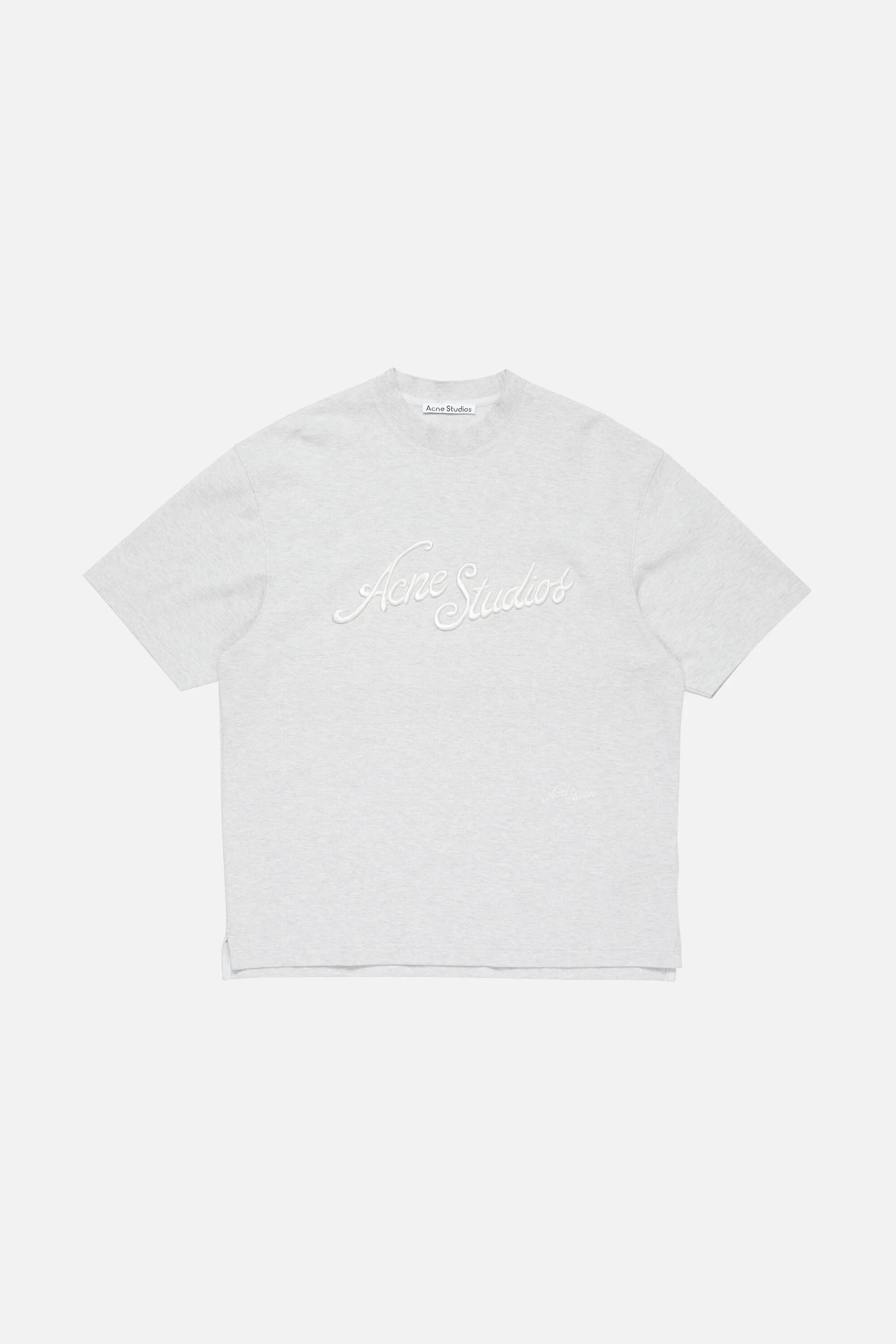 Crew neck t-shirt is cut to a relaxed unisex fit. Detailed with a seasonal Acne Studios 3-D embroidered logo. Crafted from cotton with a sprayed vintage finish. - Relaxed unisex fit - Crew neck - Embroidered logo - Female model is 178 cm / 5'10 and wears a size S - Male model is 188 cm / 6'2 and wears a size M - Style ID: FN-UX-TSHI000158 - Shell: 100% Organic cotton