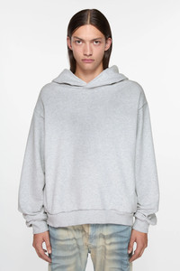 Hooded sweater is cut to a relaxed unisex fit with dropped shoulders and below-hip length. Detailed with an Acne Studios logo stamp print at the back, crafted from a fleece cotton blend with a vintage sprayed effect. - Relaxed unisex fit - Dropped shoulders - Below hip length - Hooded - Sprayed finish - Logo at the back Acne Studios 1996 - Distressed details at the cuffs and hem - Female model is 176 cm / 5′10 and wears a size XS - Male model is 188.5 cm / 6′2 and wears a size M - Style ID: FN-UX-SWEA000023 - Made with organically grown cotton and recycled polyester. - Shell: 89% Organic cotton, 11% Recycled polyester