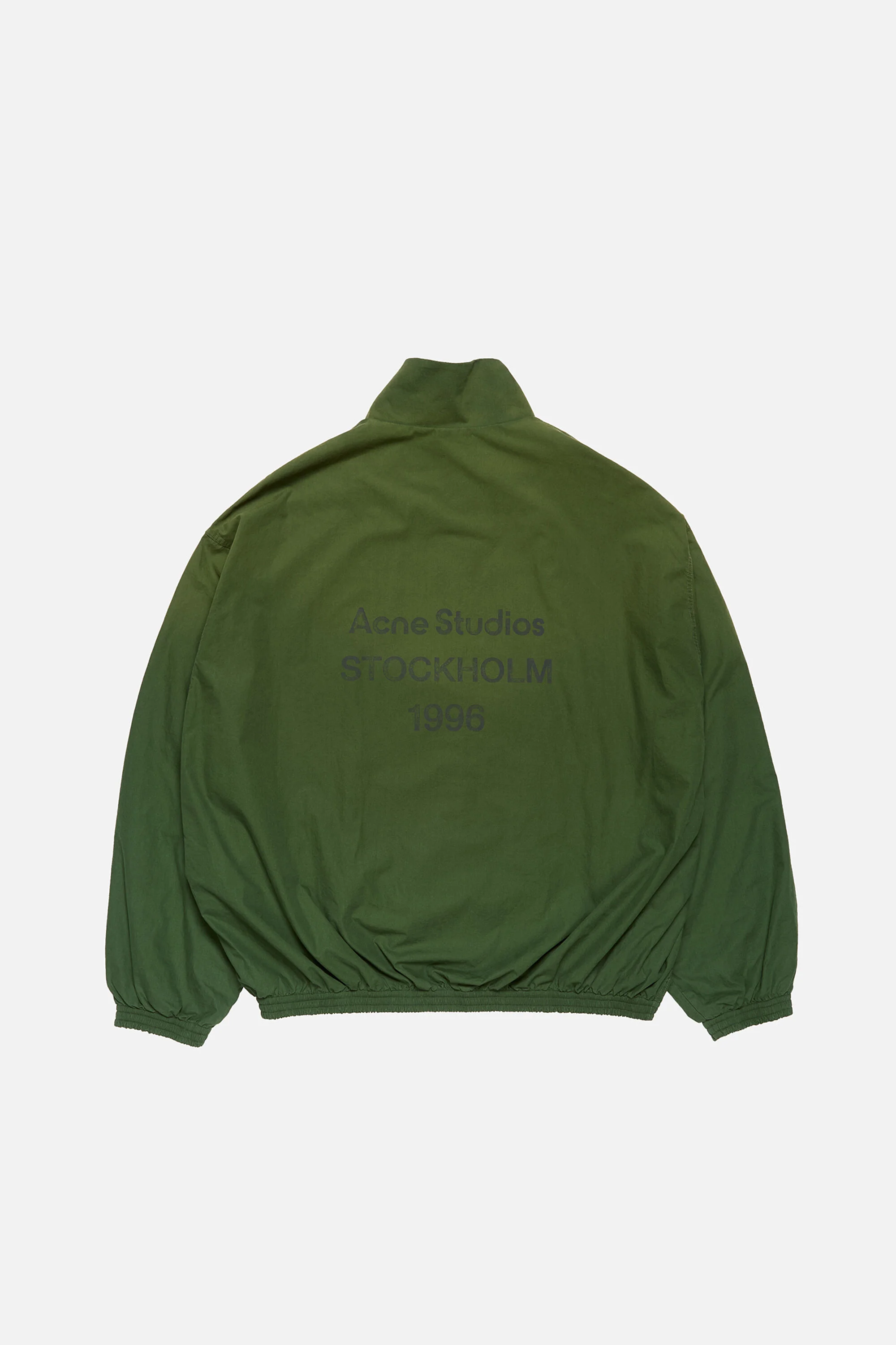 Jacket with funnel neck crafted from a cotton blend with a technical handfeel. Features Acne Studios logo prints at the chest and back, side seam pockets, elasticated cuffs and hem, and a two-way zip closure. Cut to a relaxed fit and below waist length. - Relaxed fit - Below waist length - Logo print on chest and back - Side seam pockets - Elasticated cuffs and hem - Two-way zip closure - Style ID: FN-MN-OUTW001264 - Made from organically grown cotton - Shell: 100% Cotton, Lining: 82% Nylon, 18% Elastane