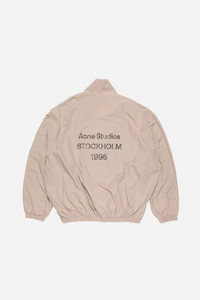 Jacket with funnel neck crafted from a cotton blend with a technical handfeel. Features Acne Studios logo prints at the chest and back, side seam pockets, elasticated cuffs and hem, and a two-way zip closure. Cut to a relaxed fit and below waist length. - Relaxed fit - Below waist length - Logo print on chest and back - Side seam pockets - Elasticated cuffs and hem - Two-way zip closure - Style ID: FN-MN-OUTW001264 - Made from organically grown cotton - Shell: 100% Cotton, Lining: 82% Nylon, 18% Elastane