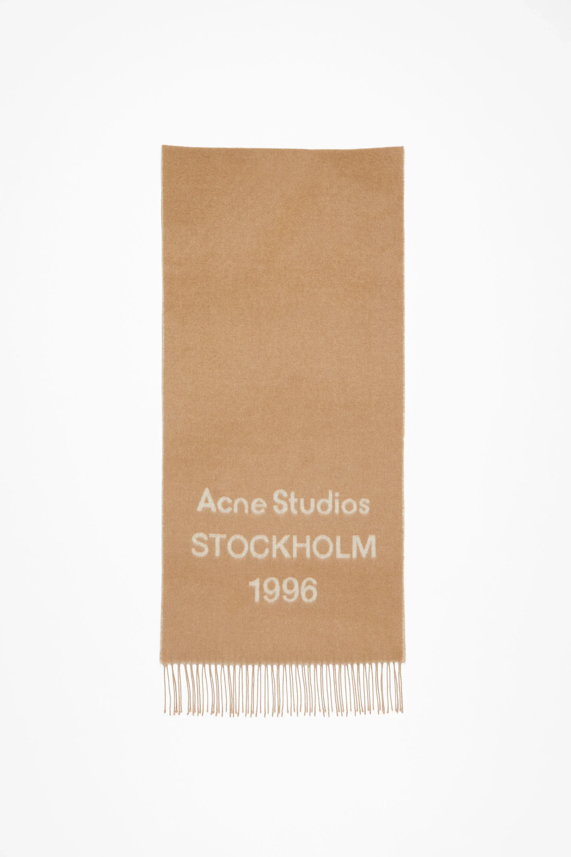 Fringed scarf crafted in double faced wool, detailed with jacquard Acne Studios Stockholm 1996 logo. - Fringed - Acne Studios Stockholm 1996 logo - Measurements: 43 cm; 200 cm - Made in Italy - Style ID: FN-UX-SCAR000432 - Made with certified wool according to the Responsible Wool Standard. Certified to the Responsible Wool Standard (RWS) by Control Union, license number CU-1024001 - Shell: 100% Wool