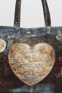 Logo tote bag features an all-over seasonal trompe l'oeil denim print on canvas cotton, detailed with an Acne Studios embossed logo on the front panel. Complete a small zippered interior compartment and shoulder straps. - Shoulder tote bag - Trompe l'oeil print denim effect - Small zippered compartment - Hand straps - Shoulder straps - Embossed Acne Studios logo - Acne Studios pink label - Measurements: 47 cm; 35 cm; 17 cm - Shoulder strap measurement: 30 cm approx. - Style ID: FN-UX-BAGS000205 - Shell: 100% Cotton, Lining: 65% Polyester, 35% Cotton