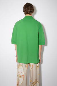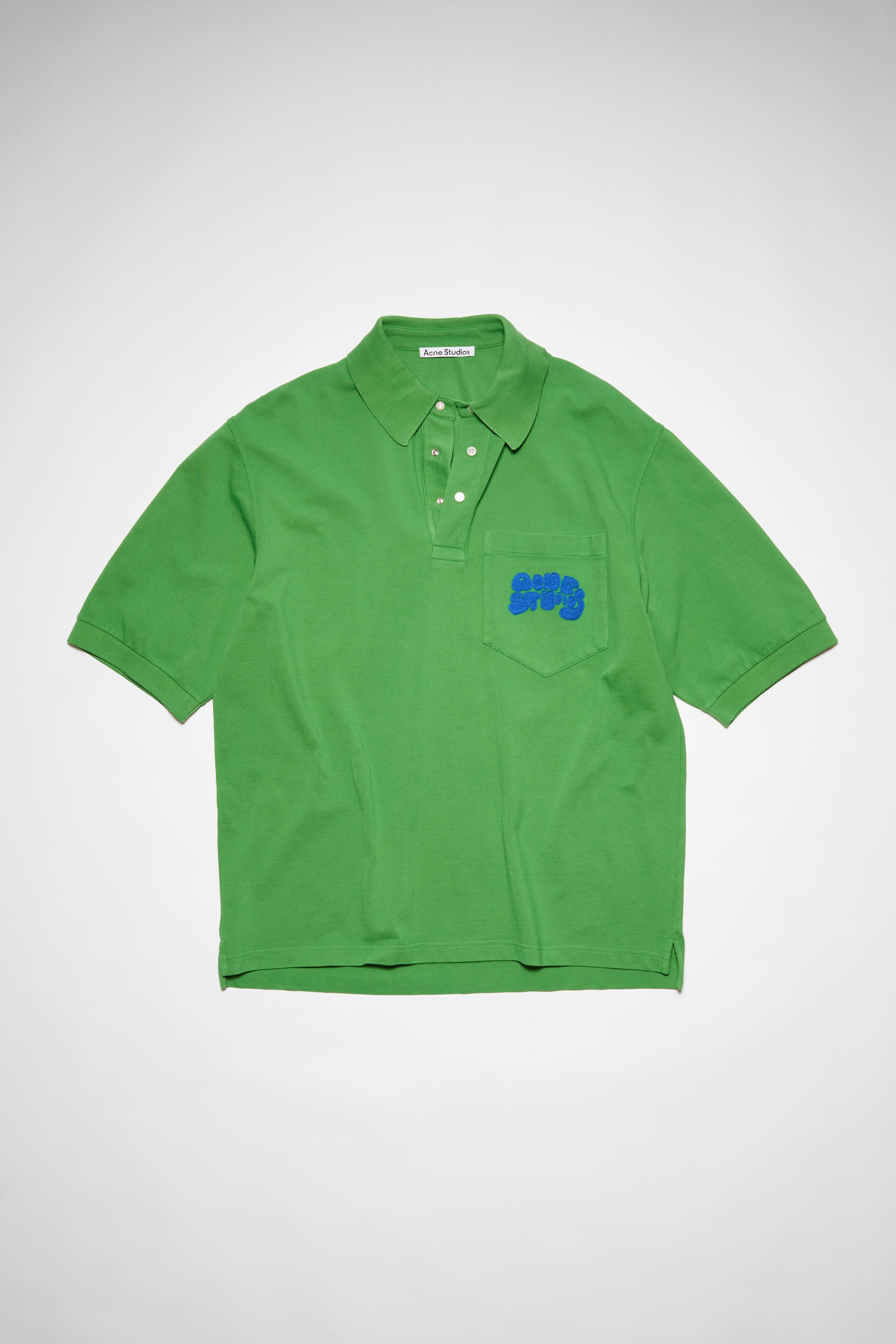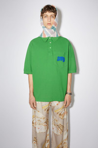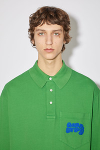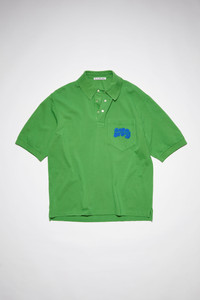 Acne Studios electric green polo t-shit is detailed with an 'Acne Studios' bubble logo stitch embroidery on the front pocket. Cut to a relaxed and made from organically grown cotton. - Midweight cotton - 'Acne Studios' bubble logo embroidery - Style ID: FN-MN-TSHI000425 - Relaxed fit - Model is 188cm/ 6'2" and wears a size M - Shell: 100% Cotton