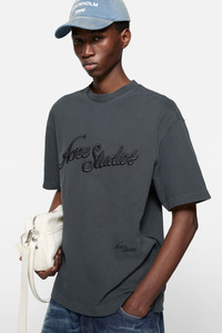 Crew neck t-shirt is cut to a relaxed unisex fit. Detailed with a seasonal Acne Studios 3-D embroidered logo. Crafted from cotton with a sprayed vintage finish. - Relaxed unisex fit - Crew neck - Embroidered logo - Female model is 178 cm / 5'10 and wears a size S - Male model is 188 cm / 6'2 and wears a size M - Style ID: FN-UX-TSHI000143 - Shell: 100% Organic cotton