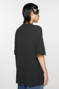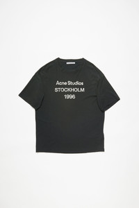 Crew neck t-shirt is cut to a relaxed unisex fit. Detailed with an Acne Studios 1996 stamp logo, distressed neckline, cuffs and bottom hem. Crafted from cotton with a sprayed vintage finish. - Relaxed unisex fit - Crew neck - Sprayed - Acne Studios 1996 logo - Female model is 180 cm / 5′11 and wears a size XS - Male model is 188.5 cm / 6′2 and wears a size M - Style ID: FN-UX-TSHI000013 - Made from organically grown cotton. - Shell: 85% Organic cotton, 15% True hemp