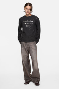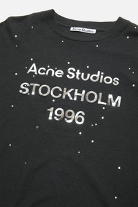 Long-sleeve crewneck T-shirt featuring a metallic foiled "Acne Studios 1996" print across the chest with rhinestone details. Crafted from lightweight cotton-hemp jersey with an irregular surface for a vintage-inspired feel. Cut to a relaxed unisex fit and hip length. - Relaxed unisex fit - Hip length - "Acne Studios 1996" print - Rhinestone details - Crewneck - Long-sleeve - Style ID: FN-UX-TSHI000231 - Shell: 85% Cotton, 15% True hemp