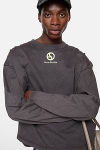Crewneck, long-sleeve t-shirt in midweight cotton jersey with an irregular, vintage look. Finished with seasonal Acne Studios logo artwork on the front. Cut to a relaxed unisex fit. - Relaxed unisex fit - Crewneck - Seasonal logo artwork - Female model is 178 cm / 5'8" and wears a size XS - Male model is 189 cm / 6'2" and wears a size M - Style ID: FN-UX-TSHI000134 - Made from organically grown cotton - Shell: 100% Cotton