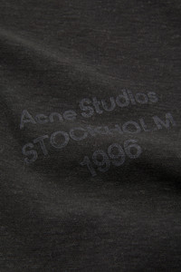 Short-sleeve crewneck t-shirt crafted from an organic cotton jersey blend with an irregular surface for a vintage-inspired feel. Featuring an Acne Studios 1996 stamp logo and a ribbed neckline, it is cut to a fitted silhouette and sits below the waist. - Crewneck t-shirt - Fitted silhouette - Below waist length - Acne Studios 1996 stamp logo - Style ID: FN-UX-TSHI000243 - Made from organically grown cotton - Shell: 85% Cotton, 15% True hemp