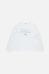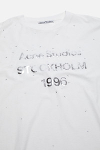 Long-sleeve crewneck T-shirt featuring a metallic foiled "Acne Studios 1996" print across the chest with rhinestone details. Crafted from lightweight cotton-hemp jersey with an irregular surface for a vintage-inspired feel. Cut to a relaxed unisex fit and hip length. - Relaxed unisex fit - Hip length - "Acne Studios 1996" print - Rhinestone details - Crewneck - Long-sleeve - Style ID: FN-UX-TSHI000231 - Shell: 85% Cotton, 15% True hemp