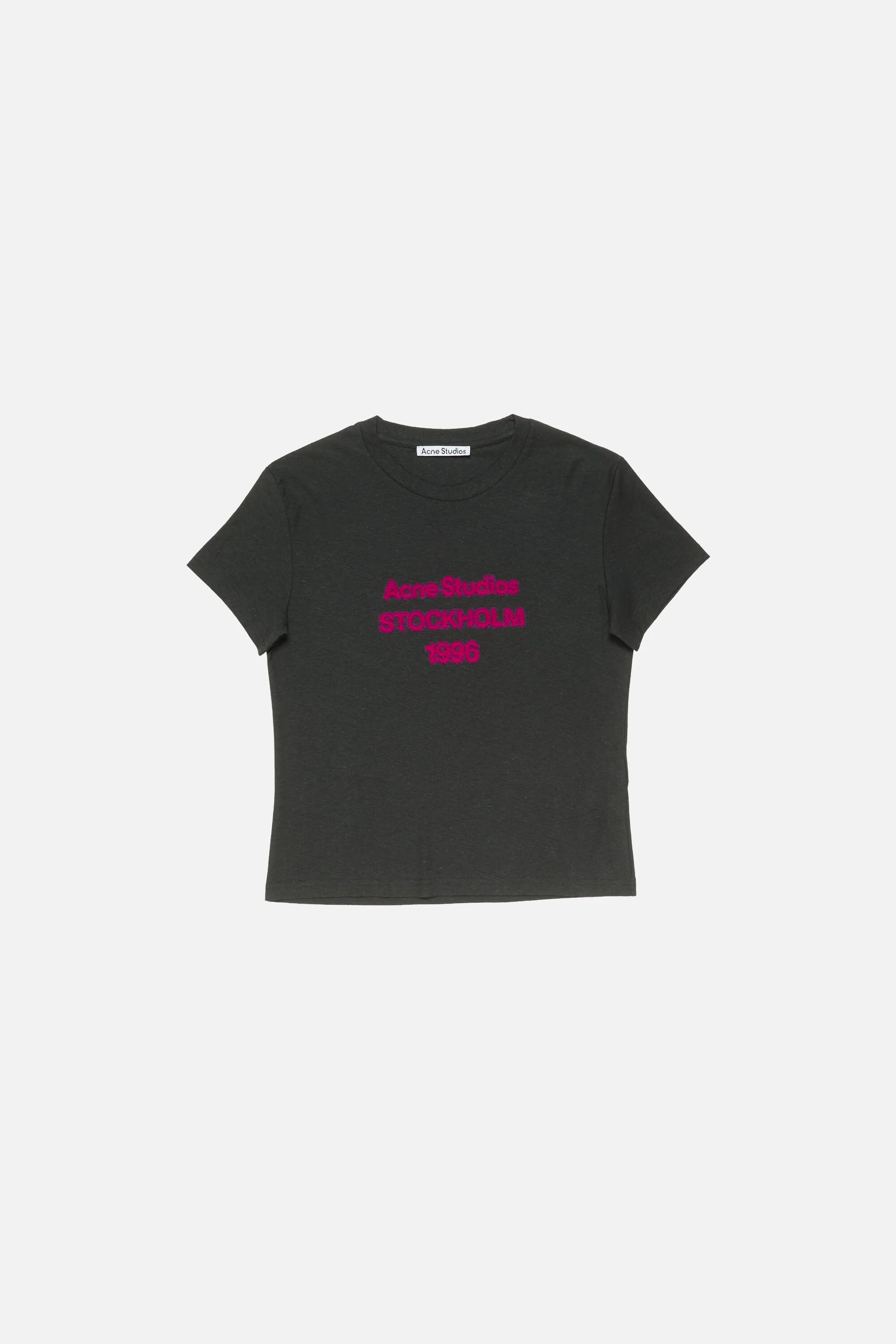 Short-sleeve crewneck T-shirt crafted from organic cotton jersey with a slightly irregular surface for a vintage-inspired feel. Designed in celebration of the Year of the Horse and featuring a signature Acne Studios 1996 logo print on the chest. Cut to a fitted silhouette that sits below the waist. - Fitted silhouette - Below waist length - Short sleeves - Crewneck - Signature Acne Studios 1996 logo print - Female model is 180 cm / 5'9 and wears a S - Male model is 187 cm / 6'1 and wears a M - Style ID: RW-UX-TSHI000002 - Made with organically grown cotton - Shell: 85% Cotton, 15% True hemp
