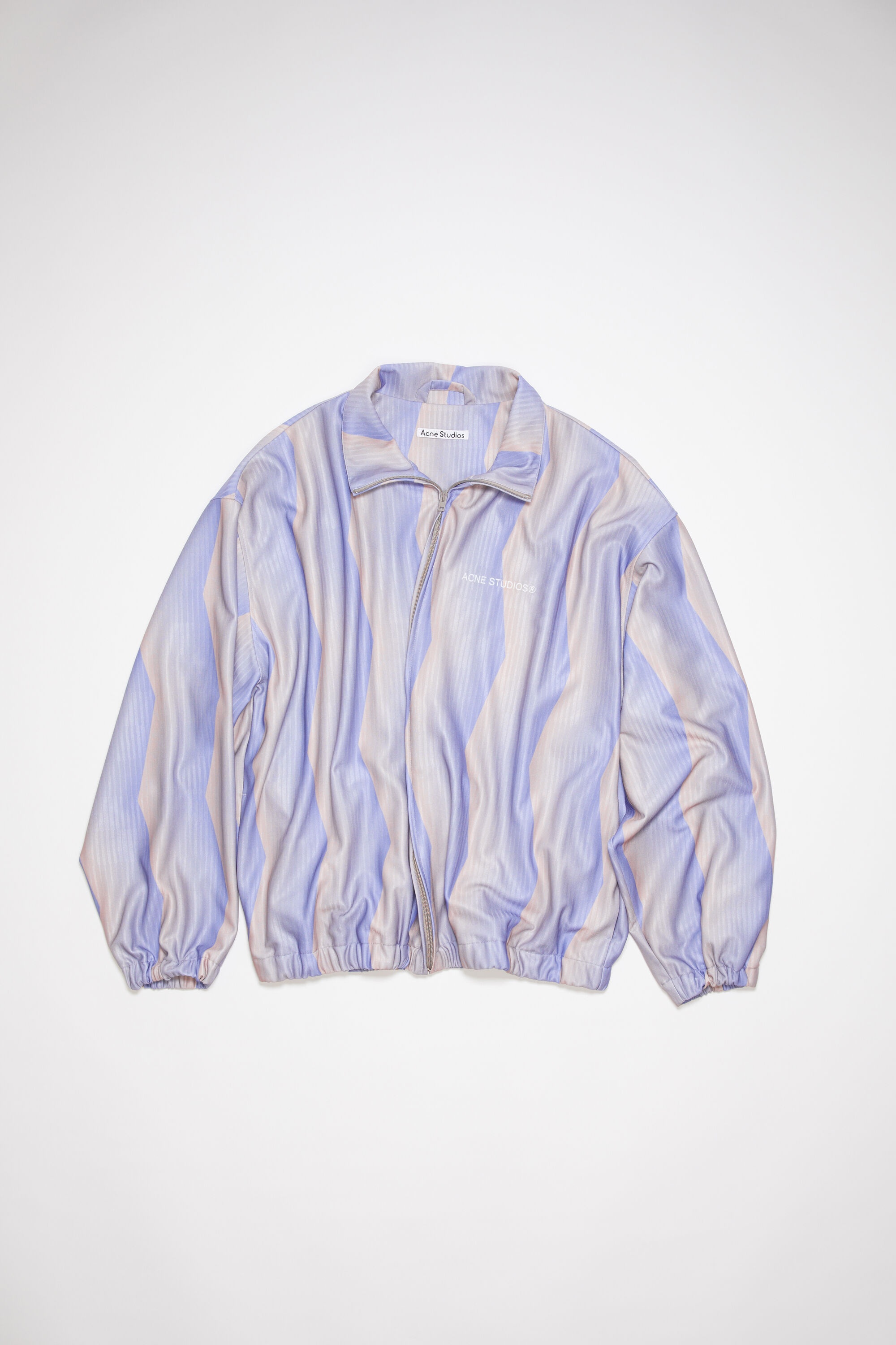 Acne Studios blue/beige jacket features an all-over sublimation print on jacquard, detailed with an Acne Studios logo embroidery on the chest. Complete with a centre front zipper closure, side seam pockets, elasticated cuffs and hem. Cut to a relaxed fit with a below hip length. - Relaxed fit - Below hip length - Sublimation print - Acne Studios logo embroidery on chest - Zipper front closure - Side seam pockets - Elasticated cuffs and hem - Mesh lining - Model is 186 cm / 6′1 and wears a size M - Style ID: FN-MN-OUTW000935 - Shell: 100% Polyester, Lining: 82% Nylon, 18% Elastane