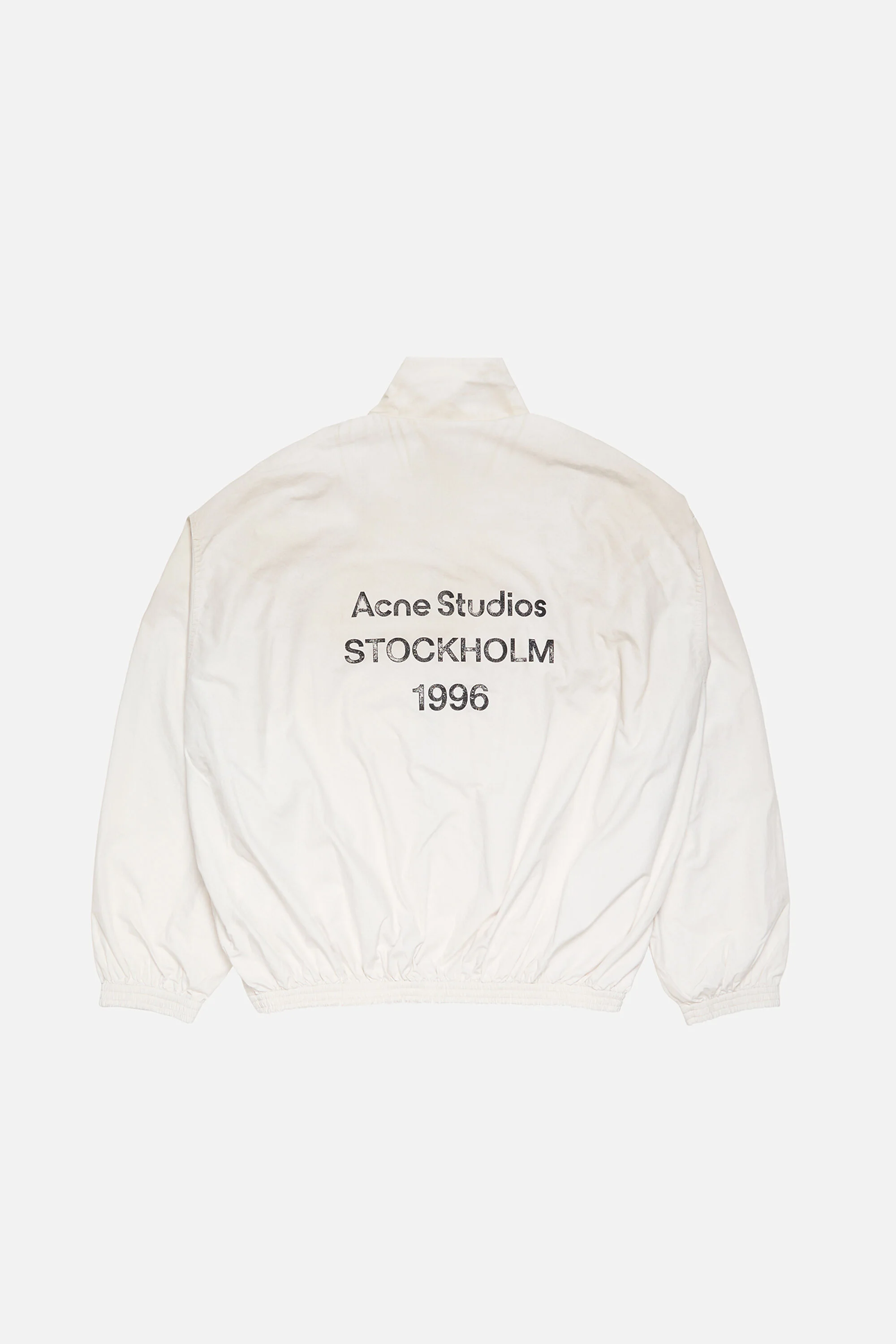 Jacket is crafted from a lightweight cotton poplin, detailed with a contrast Acne Studios 1996 stamp logo on the back. Complete with a centre zipper closure, side seam pockets, and elasticated cuffs and hem. Cut to a relaxed fit with a hip length. - Relaxed fit - Hip length - Acne Studios 1996 stamp logo - Zipper front closure - Side seam pockets - Elasticated cuffs and hem - Fully lined - Model is 185 cm / 6′1 and wears a size 46 - Style ID: FN-MN-OUTW001264 - Main material made from organically grown cotton - Shell: 100% Cotton, Lining: 82% Nylon, 18% Elastane