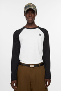 Crew neck long sleeve t-shirt is crafted lightweight jersey cotton blend. Detailed with a small bow logo at the chest. Cut to a regular unisex fit and hip length. - Regular unisex fit - Long sleeve - Hip length - Bow logo - Female model is 178 cm / 5'10 and wears a size S - Male model is 187 cm / 6'1 and wears a size M - Style ID: FN-UX-TSHI000094 - Made with organically grown cotton. - Shell: 80% Cotton, 20% Lyocell
