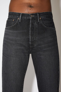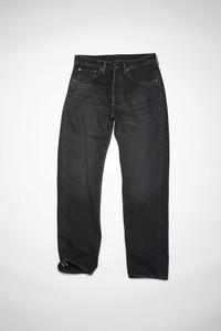 Acne Studios black relaxed fit jeans feature a 5-pocket construction with a low waist, straight leg and a regular length. The 2003 jeans are crafted from rigid denim made of organically grown cotton. - Non stretch - Low waist - Relaxed fit - Straight leg - Regular length - Button fly - Made in Italy - Model is 187cm/6'1 and wears a size 30/34 - Style ID: Acne Studios 2003 Vintage Black - Main material: 100% organic cotton