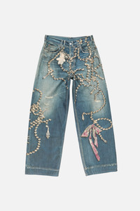 Jeans featuring a seasonal trompe-l’oeil print of crystals and bows, crafted from denim with a brushed face for a soft handfeel. 1981 jeans are cut to a loose fit with a low to mid waist, super baggy leg, and long length. - Loose fit - Low to mid waist - Super baggy leg - Long length - Seasonal trompe-l’oeil print - 5-pocket construction - Model is 178 cm / 5'8 and wears a size XS - Regular, corresponds to 34 and denim 25-26 - Style ID: FN-UX-TROU000052 - Shell: 100% Cotton