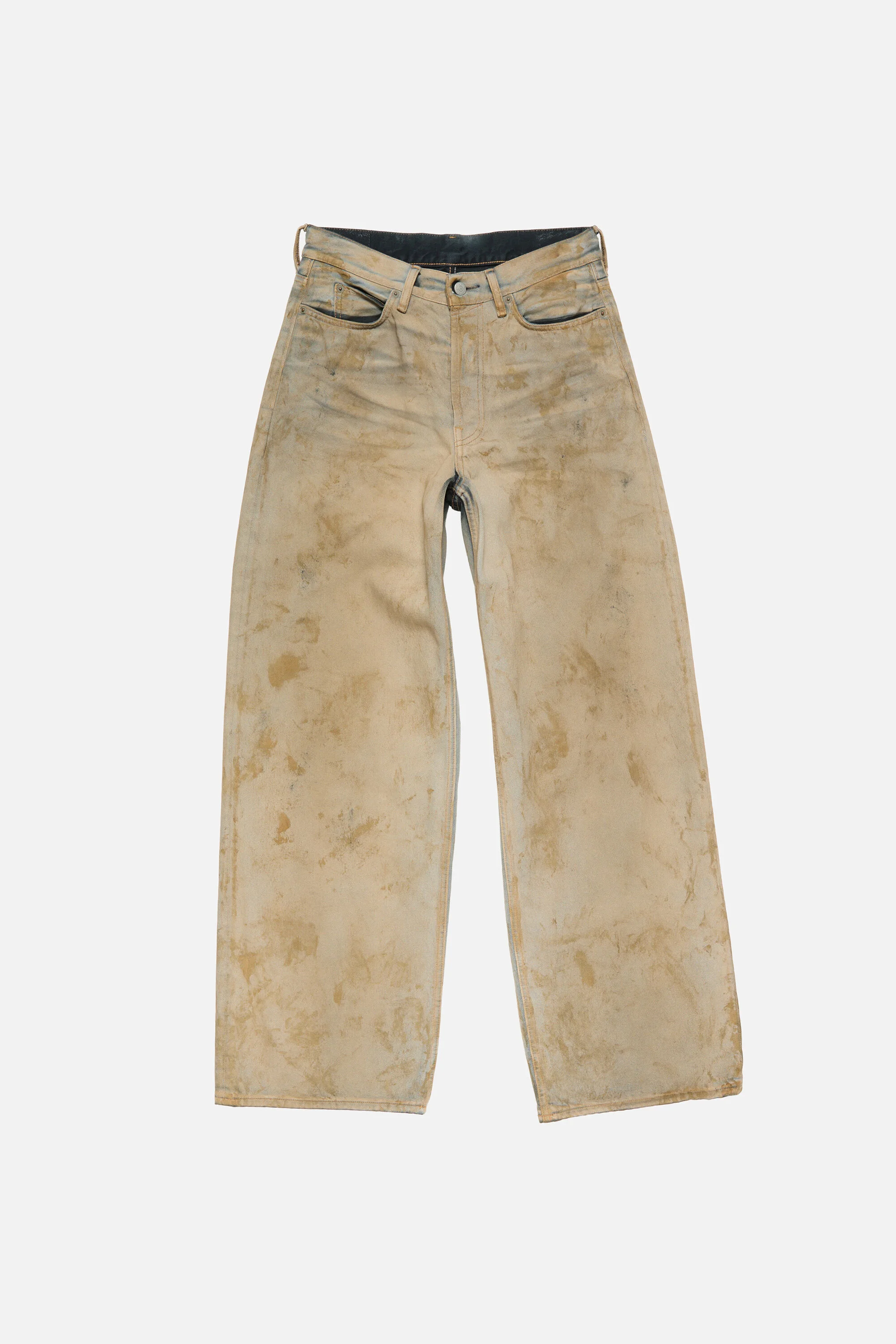 Jeans feature an authentic worn-out look on an indigo base overdyed in black, with a total fade-out and manual stain detailing. Each garment is unique. 1981 jeans are cut to a loose fit with a low-to-mid waist, wide baggy leg, long length, and button fly. - Loose fit - Low-to-mid waist - Wide baggy leg - Long length - Button fly - Leather logo patch - Male model is 187 cm / 6'1 and wears a size Small/Regular: size 46, denim 29 waist/32–34 length. - Unisex jeans are designed to sit low on the waist. For a higher rise, we recommend selecting one size down. - Style ID: Acne Studios 1981 U Klondike - Made from organically grown cotton - Shell: 100% Cotton, Patch: 100% Cow leather