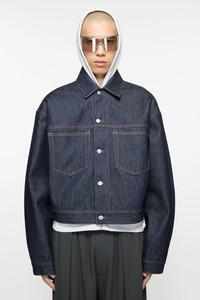 Denim jacket is cut to a boxy fit with dropped shoulders and waist length. Crafted from non-stretch denim in an indigo blue wash. Detailed with branded stud button closure and functional tabs at the hem. - Boxy fit - Waist length - Dropped shoulders - Branded button-up closure - Chest pockets - Functional tabs at hem - Female model is 179 cm / 5′11 and wears a size XS - Male model is 187 cm / 6′1 and wears a size M - Style ID: FN-UX-OUTW000068 - Shell: 100% Cotton