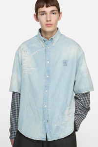Mended denim shirt - Light blue