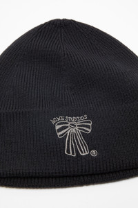 Ribbed knit beanie crafted from soft merino wool. Featuring small embroidered bow. - Ribbed merino wool - Small embroidered bow - Upturned edge - Measurements: 59 cm approx. - Style ID: FN-UX-HATS000345 - Certified to the Responsible Wool Standard (RWS) by Control Union, license number CU-1024001 - Shell: 100% Wool