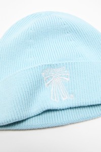 Ribbed knit beanie crafted from soft merino wool, detailed with a small embroidered bow. - Ribbed merino wool - Small embroidered bow - Upturned edge - Measurements: 59 cm approx. - Style ID: FN-UX-HATS000345 - Certified to the Responsible Wool Standard (RWS) by Control Union, license number CU-1024001 - Shell: 100% Wool