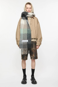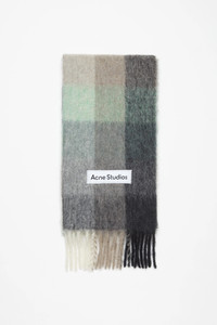 Checked scarf is made of a soft mohair blend with fringed ends. Detailed with an Acne Studios embroidered logo. Crafted from carefully selected material known for its soft and hairy fibres. - Check - Logo patch - Fringed ends - Measurements including fringe: 250 cm length; 28 cm width - Fringe measurements: 12 cm approx. - Made in Italy - Style ID: FN-UX-SCAR000115 - Due to the characteristics of the material, it is natural for small fibres to shed over time. Handle with care to preserve the original appearance as long as possible. - Main material: 33% alpaca, 25% wool, 22% nylon, 20% mohair
