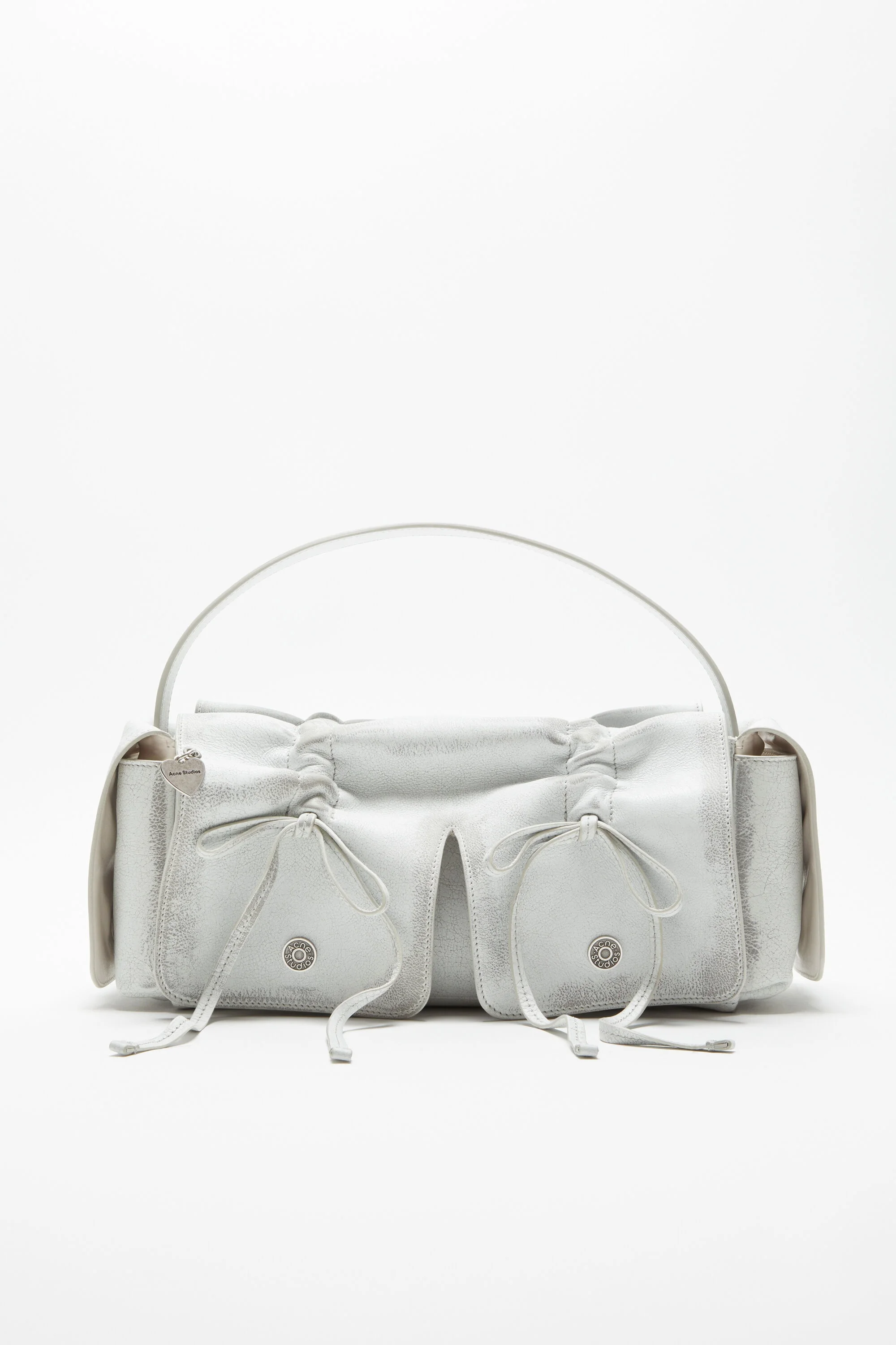 Shoulder bag features a multipocket construction, detailed with knotted lacing and jeans-inspired rivets on the pockets. Crafted from grained leather with washed finish. Complete side flap pocket with a discrete magnetic closure, spacious interior and adjustable shoulder strap. - Multipocket - Brushed leather - Knot details - Jean-inspired rivets - Measurement: 13 cm; 33 cm; 11 cm - Adjustable shoulder strap length: 45 cm to 75 cm - Style ID: Multipocket Vintage - Shell: 100% Calf leather, Lining: 50% Polyurethane, 50% Polyester